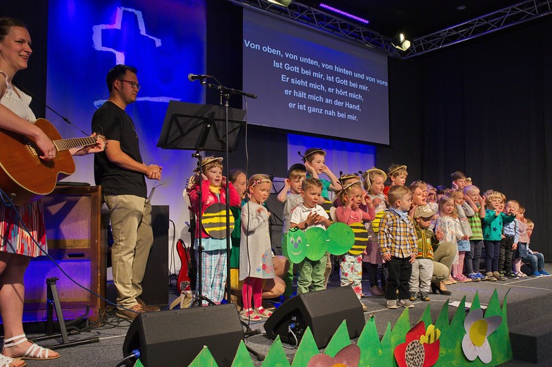 Auch die Kinder stellten mit ihren Liedern und Gedichten die Wunder und Vielseitigkeiten in der Schöpfung dar. Besonders eifrig waren die Kinder bei den Bewegungsliedern dabei, die mit einer eigenen Rhythmusgruppe unterstützt wurden.