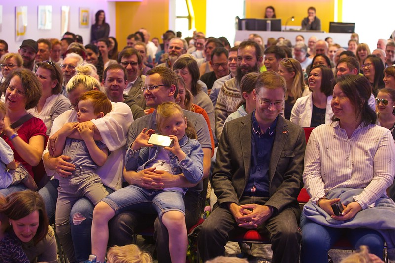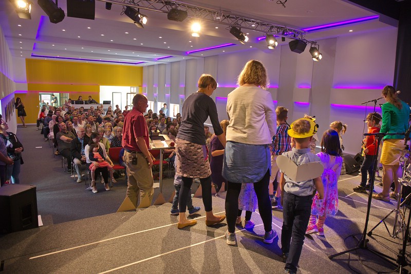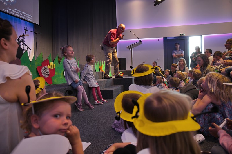 Erste Unterrichtstunde im Geburtstagsgottesdienst: Bio, Aufklärung, wo kommen die Babys her? Erhard Plentz veranschaulichte sehr spannend für die Kinder und sehr unterhaltsam für die zahlreich erschienen Eltern und Großeltern das Wunder der Entstehung des Lebens. Unglaublich, dass schon nach 7 Wochen der kleine Mensch mit Fingern an den Händen ausgebildet ist. Das ist geniale Schöpfung Gottes und er freut sich über jedes neue Leben und kann es kaum erwarten, dass wir zur Welt kommen und weiter wachsen. Er liebt jeden Menschen.