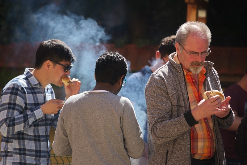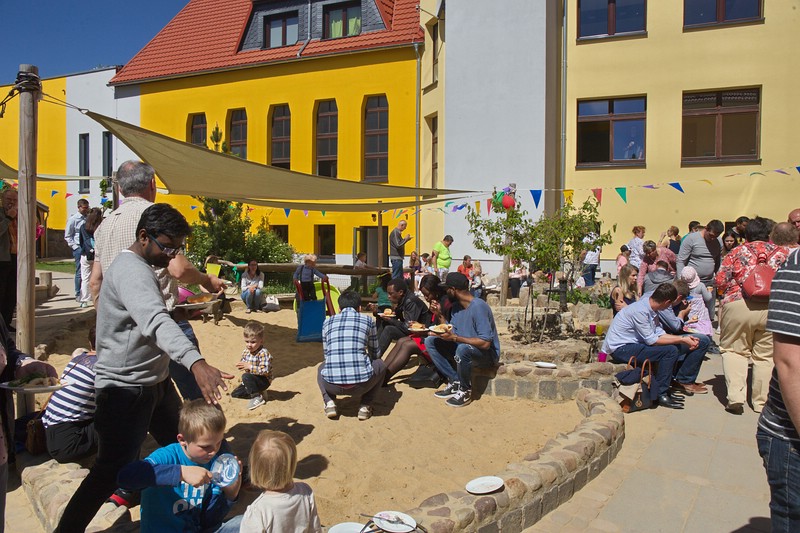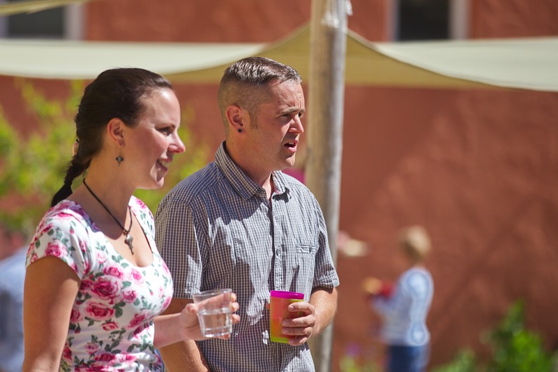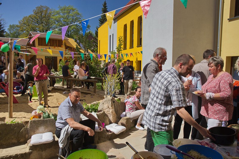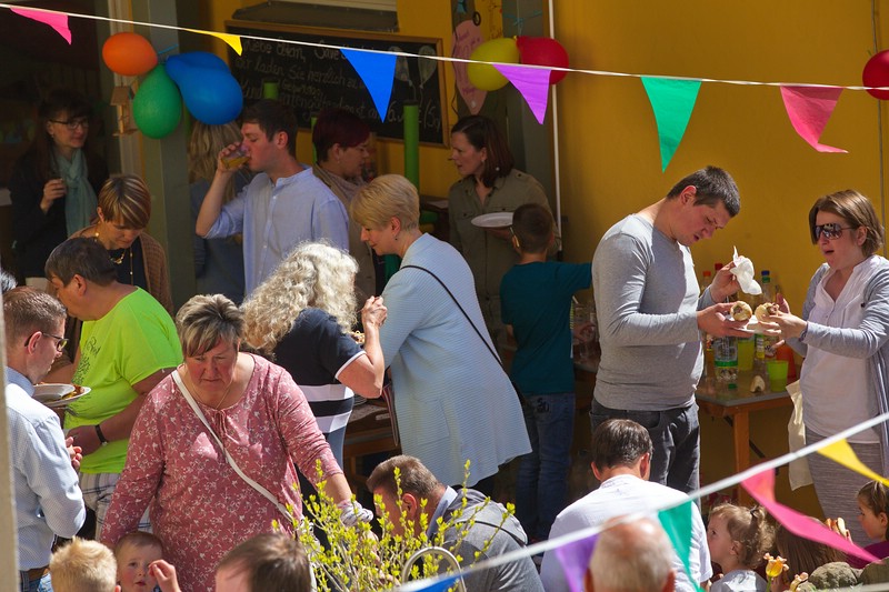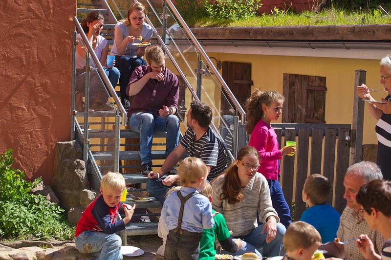 Danach lockte das schöne Wetter in den geschmückten Burgspatzenhof. Bei Bratwürsten und Salaten verbrachten wir eine schöne gemeinsame Zeit. Ein gelungener Geburtstag.